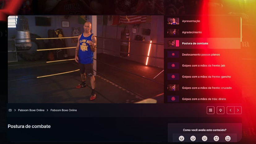 Estou treinando boxe pela primeira vez na vida e tudo em casa. O curso é tão bem feito que parece que o Paboom está ali comigo. Já aprendi jab, direto, cruzado, esquiva… e continuo evoluindo
